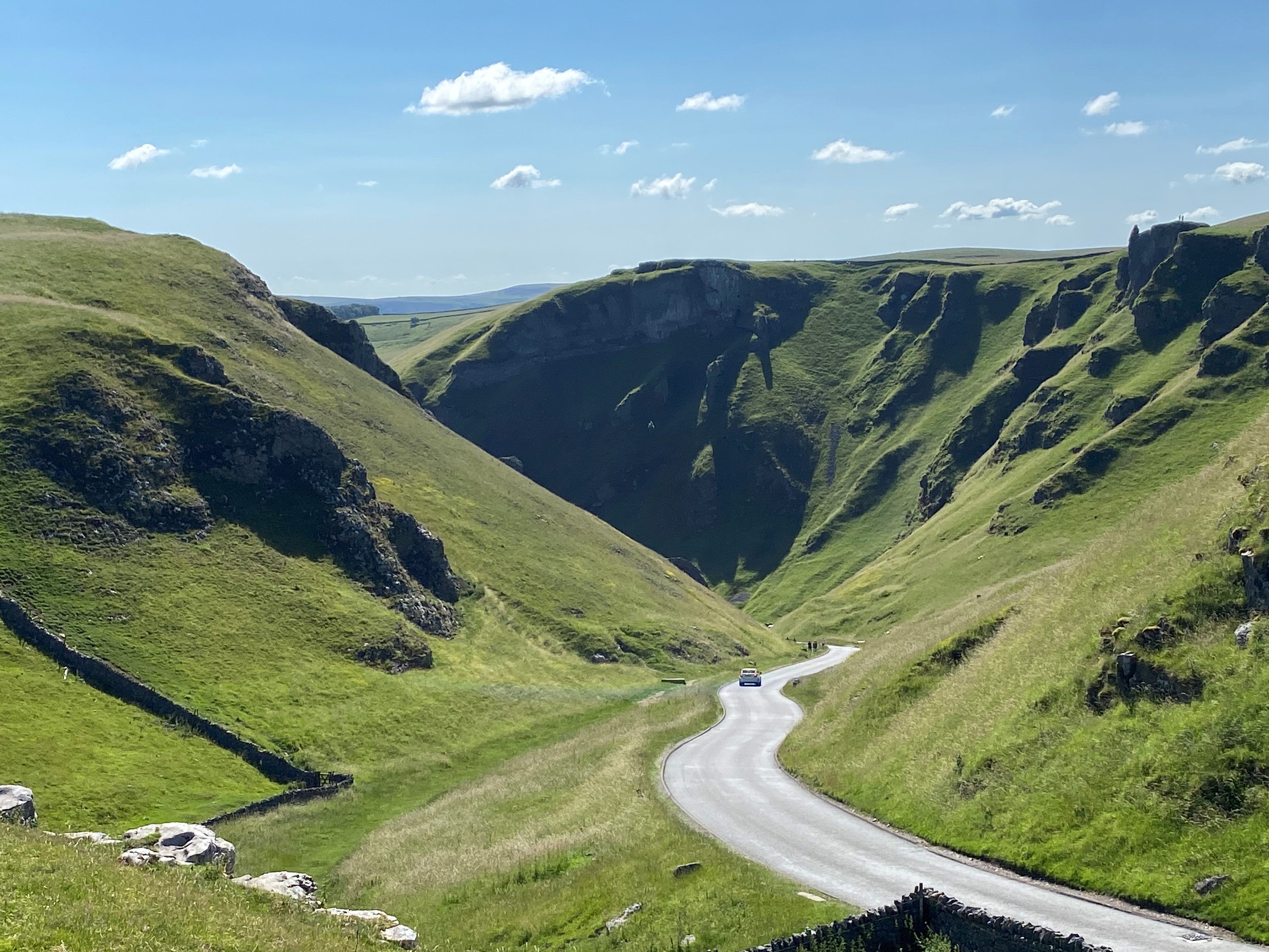 Headed out through Castleton on the 2nd day, starting with a really tough walk up through Peak Cavern and Cave Dale. The 85 degree heat didn’t make it any easier, but the scenery was spectacular. Once at the top I traversed the ridge across to Mam Tor before dropping down to Winnatts Pass – a sight to behold!